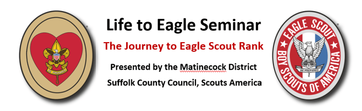 The seminar will walk participants through the entire Eagle Service Project, with lots of hints and suggestions along the way.” It will be conducted by David Hunt, President of Suffolk County Council, BSA, and author/publisher of EagleCoach.org, along with Joseph Pokorny, Matinecock District Advancement Chair. As Eagle Coaches, they have coached hundreds of Scouts to Eagle Scout Rank!
